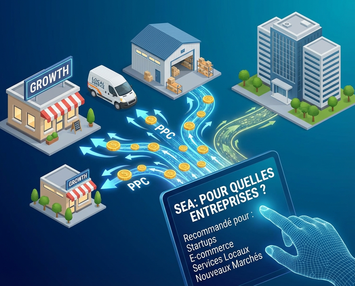 Toutes les tailles d’entreprise peuvent tirer profit du SEA, qu’il s’agisse d’accroître la notoriété dès le lancement d’une activité ou d’augmenter les ventes lors d’opérations spéciales. Le recours à une agence SEA optimise particulièrement les efforts des structures en croissance ou souhaitant moderniser leur acquisition digitale. Pour chaque typologie d'entreprise :